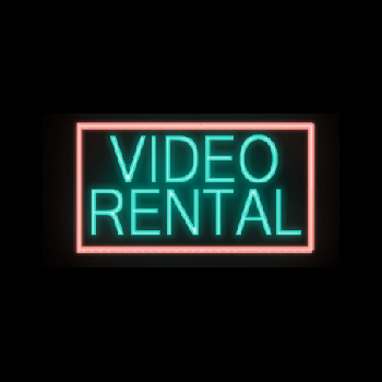 "Video Rentals" Neon Stock Sign. Letters Turquoise, Border Coral Pink