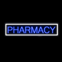 "Pharmacy" Neon Stock Sign. Letters Horizon Blue, Border 6500 White