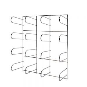 Heavy gauge wire constructed rack holds sixteen (16) rolls of 3â€Â core diameter material without using valuable floor space. This rack is durable enough to hold even up to 16 rolls of 30â€Â x 50 yds material with ease. Proper storage of pressure sensitive materials dictate supporting rolls by the core to avoid adhesive activation. Included are adjustable screw mounting clips, allowing alignment with studs in most walls. Holds up to 30â€Â x 50 yds material.